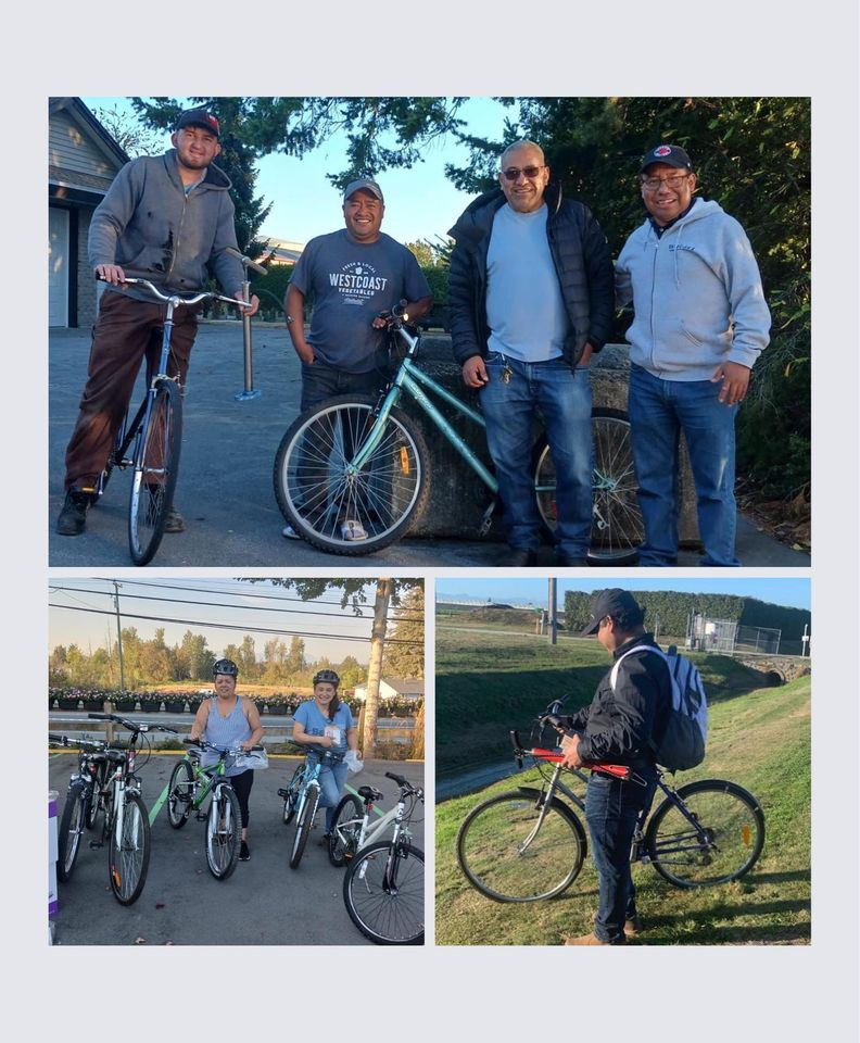 Other volunteers, in Calgary (Canada), the United States, the United Kingdom, also collect bikes for workers elsewhere, but Steven specializes in repairing bikes. Moreover, Fraser Valley migrant farm workers are provided with a helmet, reflectors and “needs written” in Dr Page’s notebook.